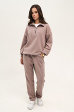 Костюм жіночий Світшот на блискавці + Штани прямі Brown