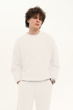 Світшот оверсайз у ніжному milk-відтінку — ідеальний для комфортних повсякденних образів. Модель виконана з м’якої щільної тканини, добре тримає форму. Горловина, плечі та пояс акуратно прострочені, що забезпечує зносостійкість і охайний вигляд. Легко поєднується з будь-яким базовим одягом. – зріст моделі – 180 см; – розмір на моделі – “М”